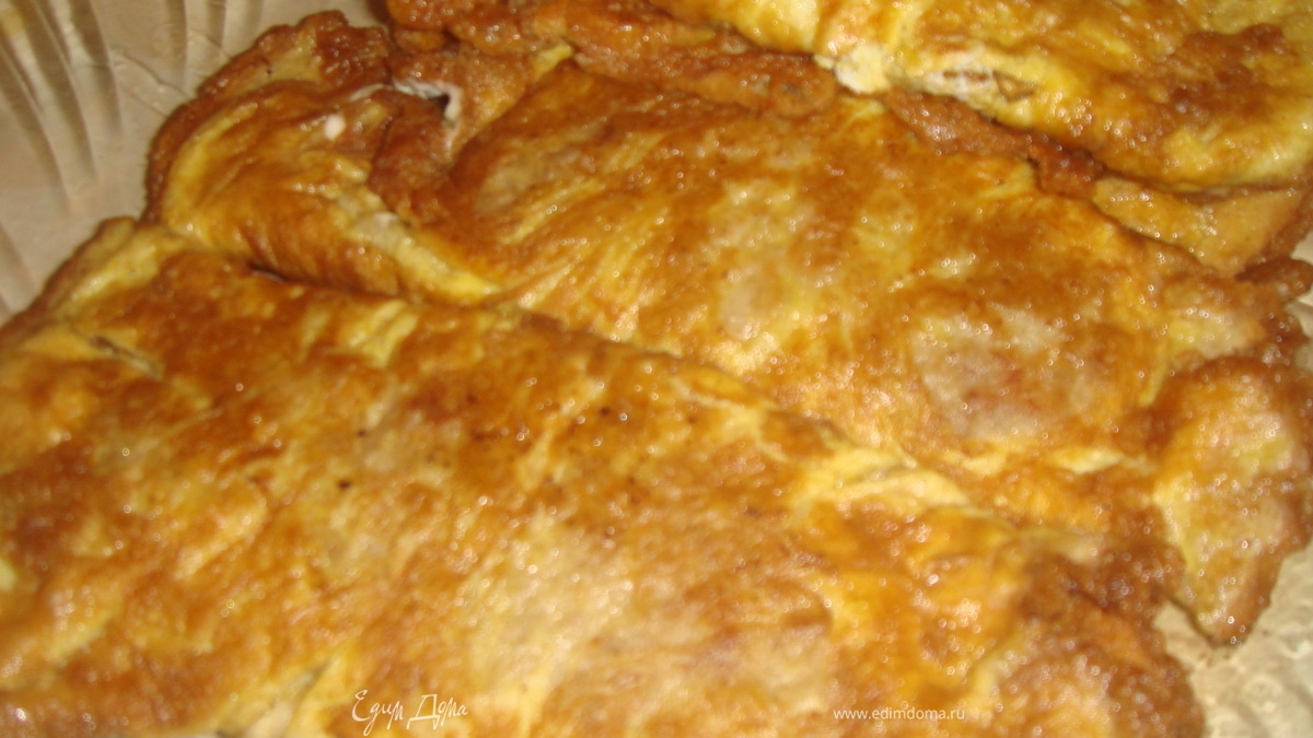 - Шаг 6С внутренней стороны нашей бризоли, котлету намазываем соусом и закрываем с двух сторон яичным омлетом
