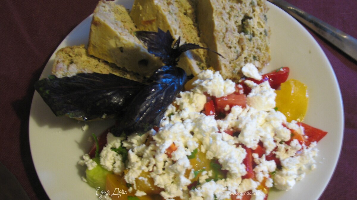 - Шаг 5Выложить массу в форму сверху разложить кусочки сливочного масла и присыпать панировочными сухарями. Выпекать до готовности (у меня ушло где-то 50 мин.) Подавать теплым, разрезанным на порционные кусочки с овощами, овощными соусами (например лечо).