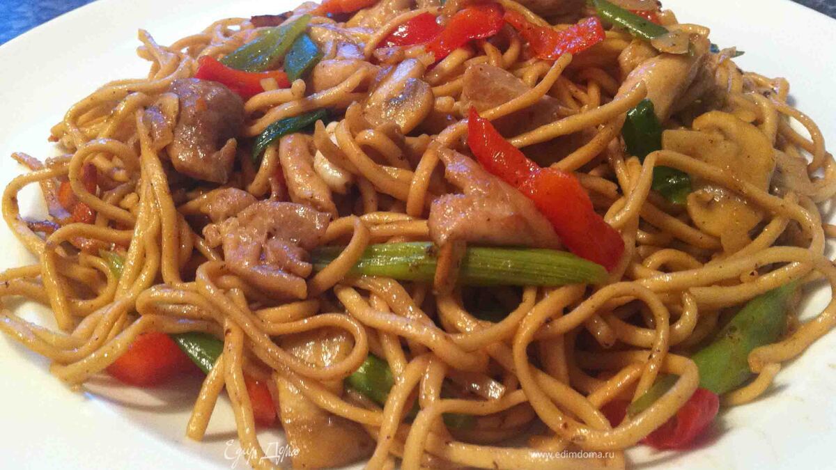 Позавчера муж заявляет: Научишься готовить китайские блюда - будешь самой лучшей женой ))). Уж очень он у меня любит китайскую кухню. Ну и пришлось искать, смотреть - чтобы такое приготовить. Попробовала приготовить чоу-мейн, немного исправленного, в моем исполнении. Получилось очень даже вкусно. Вообще вариаций данного блюда очень много. Можно сделать из курицы, утки, свинины, микс овощей, из грибов, креветок, говядины - вообщем на любой вкус. Под основу я использовала куриную грудку.
