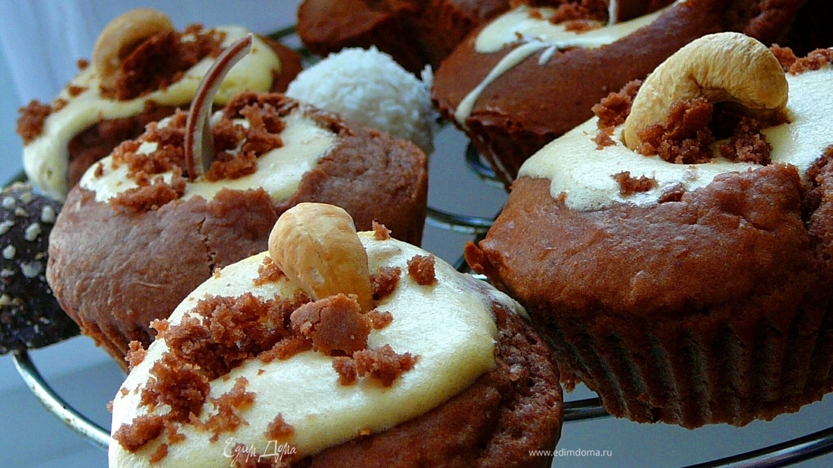 - Шаг 2Из кексов вынуть небольшую часть мякоти,раскрошить ее и смешать с начинкой(с плавленным шоколадным сыром,или абрикосовым джемом и миндалем),у меня на фото готовый крем тирамису,я выливала его ложкой и посыпала кексовой крошкой.Пробывала все три варианта начинки,все понравились,но по ошибки остались только эти фото.