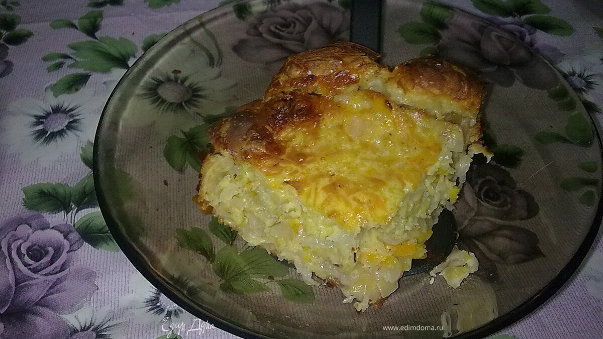 идея "заливной начинки" неплохая - вот только смысла использования слоёного теста нет - всё равно оно не поднимается и нет "слоёности" (т.к. на нём тяжёлый слой начинки) )) попробуйте лучше для основы приготовить простейшее песочное тесто - получится намного вкуснее!
