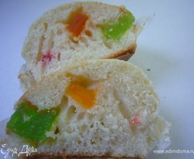 Разогреть духовку до 180 г.Смешать жидкие ингредиенты,затем осторожно соеденить с сухими ингредиентами.В бумажные формочки выложи по 1-й ст. ложки теста,сверху вдави немного цукаты и отправь в духовку примерно на 20 мин.