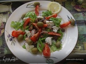 Увидела тоже на просторах инета и обалдела, захотелось повторить) В оригинале в салат еще добавляли авокадо, сбрызнутое лимонным соком, но у меня под рукой его не было...