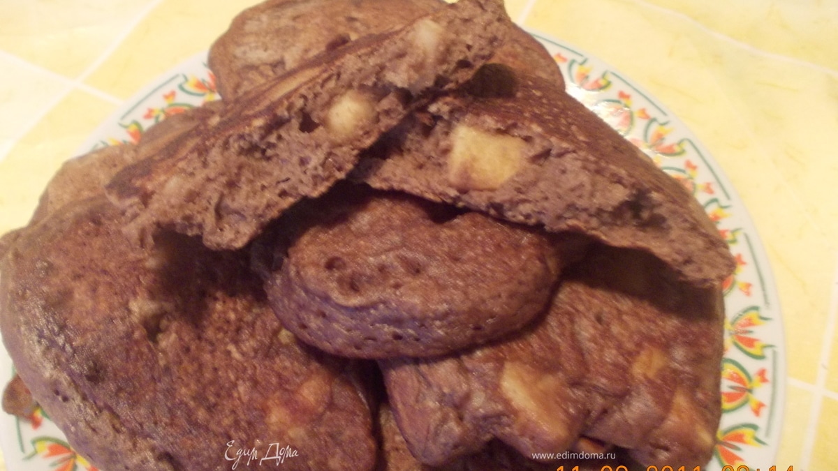 шоколадные оладушки с яблоками