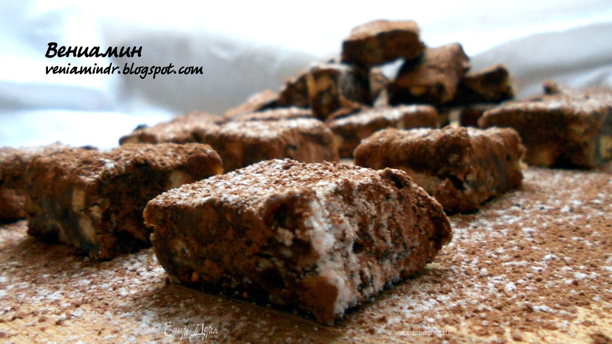 Соединить печенье, орехи и инжир с шоколадно-кофейной массой, размешать. ***На этом этапе можно плеснуть 1-2 ложку рома - проверено, не помешает!*** - Шаг 6