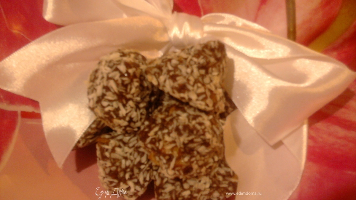 Поставить на водяную баню кастрюльку с собранными недоеденными конфетами, сливочным маслом. Когда все растопится, всыпать измельченное печенье (бисквитные крошки (и)или вафельные крошки), орехи, можно изюм, чернослив (в общем все, что хотите или что надо "утилизировать" или доесть). Затем слепить конфетки, обвалять их в кокосовой стружке и поставить в холодильник. С чаем и кофе - очень ничего! - Шаг 2