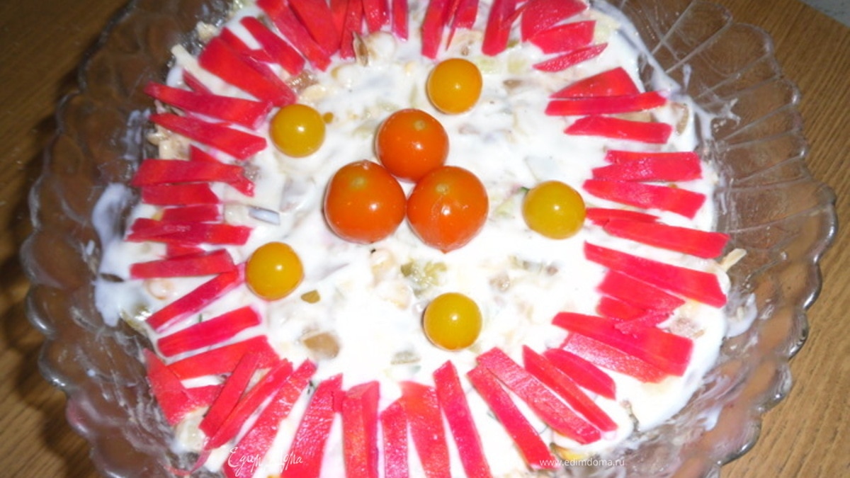 Добавить соль по вкусу и заправить йогуртом. Приятного аппетита!