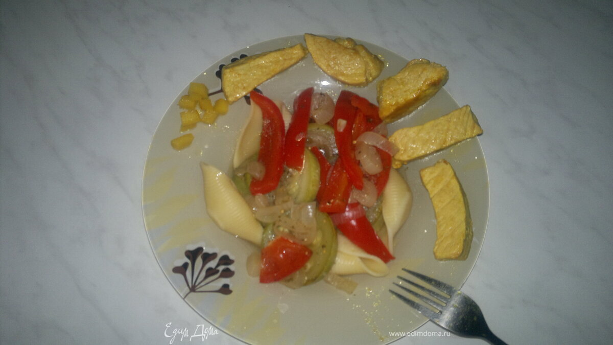 Абсолютно сбалансированное питание,сочетание острой восточной свинины с томлеными овощами во французском стиле и частичка италии ввиде традиционных макаронных изделий.