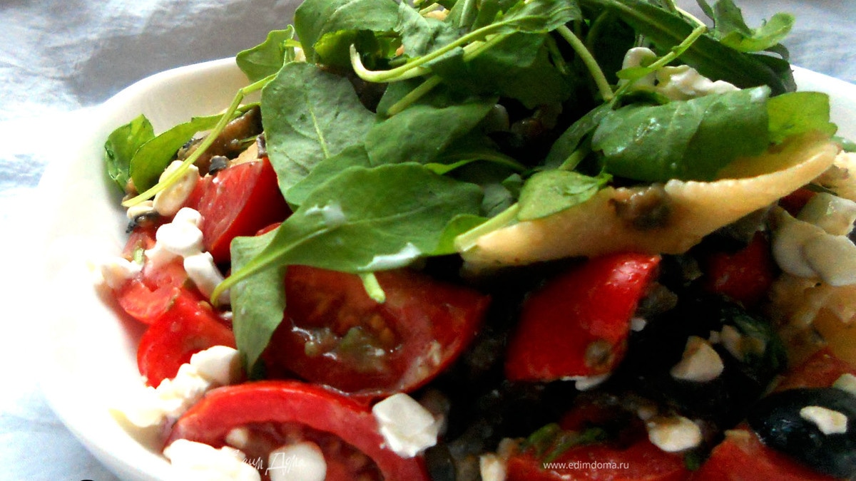 - Шаг 1Черри и маслины нарезать, добавить измельченную петрушку. Присоединить теплые пасту и баклажаны, сдобрить ароматным оливковым маслом и соком 1/4 лимона (2-3 ст.л.) при необходимости присолить. При подаче посыпать творожным сыром и украсить салатными листьями.