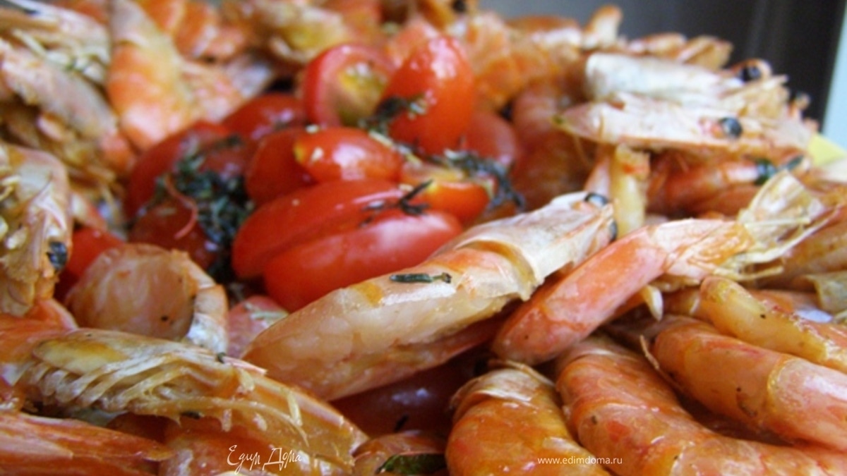 В центр блюда укладываю помидоры чери, разрезанные на две части. Поливаю заправкой из сока лайма, оливкового масла, розмарина, тимьяна, перца и небольшого количества соли. Вокруг укладываю обжаренные креветки. Соус к креветкам не требуется))) Они и так сочные и в меру ароматные))) Так, как надо))) Мохито...дайкири... Креветки!!!