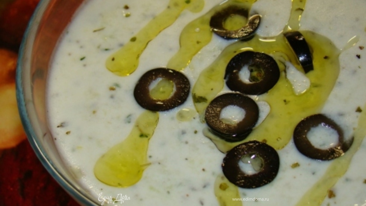 - Шаг 1Очистить огурцы от кожуры и натереть на терке, отжать и посолить. Добавить толченый чеснок, уксус, йогурт,перец,укроп, перемешать. В последнюю очередь добавить растительное масло. При желании посыпать красным перцем и маслинами.