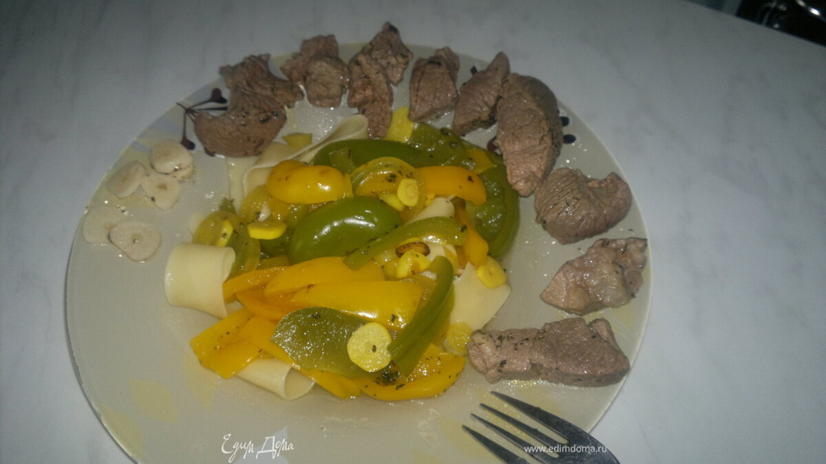 - Шаг 1Обжариваем барана с не большим количеством оливкового масла, добавляем воду и специи тушим около 25 минут. Режем овощи не крупно, полосками или дольками, начинаем обжарку на большом огне ечнока и лука, через 2 минуты добавляем перец и еще через 2 добавляем специи и воду и тушим 7-10 минут. Отвариваем до состояния аль дэнты пасту, сливаем воду и сбрызгиваем оливковым маслом.