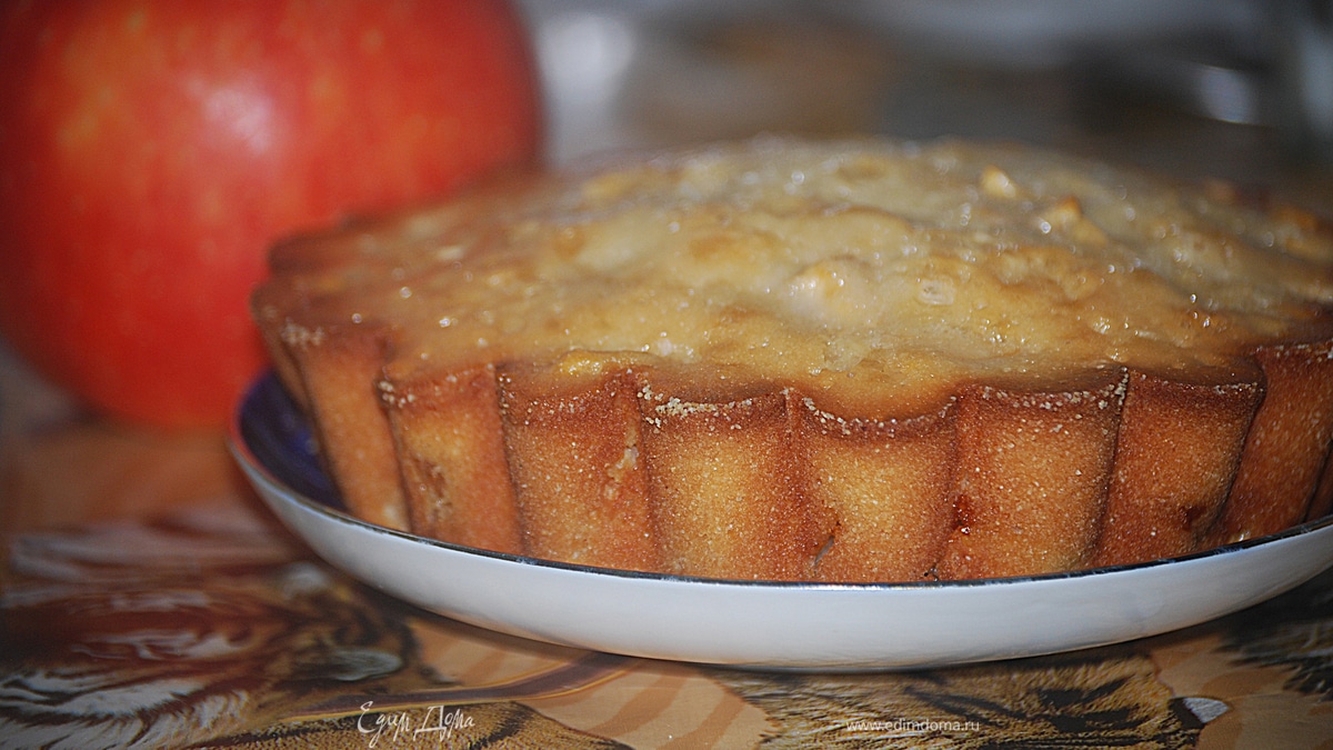 - Шаг 3Берем форму (у меня сковорода) я в нее прокладываю бумагу, на нее выкладываю яблоки, затем выливаю наше тесто и ставлю в духовку, предварительно разогретую до 180гр., и выпекаю примерно 40-60 минут. Вообще я все определяю на глаз. Как увидите золотистую корочку на пироге и запах стоит на всю кухню, значит пирог готов. Есть еще другой способ проверки готовности - берем нож, в одном месте протыкаем пирог и смотрим остается ли тесто на ноже, если нет, тогда готово, если осталось, значит пирогу еще надо постоять минуток 5 в духовке. Вот и все!) Приятного аппетита!))
