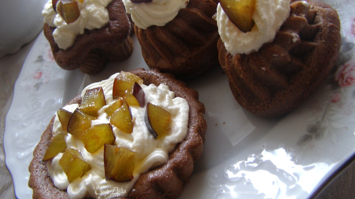 Шоколадное пирожное "экспромт" со сливочным кремом и сливой