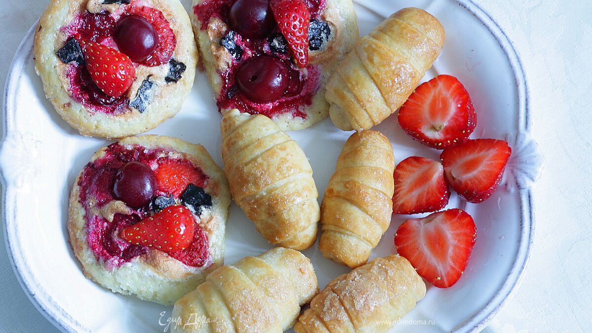- Шаг 11. Все ингредиенты для теста смешать до однородной консистенции, разделить на равное части и раскатать плоские круглые лепешечки. По краю каждой лепешки сформировать бортики. 2. Застелить противень бумагой для выпечки, выложить на него лепешки и запекать в разогретой до 180˚С духовке около 10-15 минут. 3. Все ингредиенты для соуса перемешать и прогревать на огне, постоянно помешивая, чтобы соус не подгорел. Когда соус загустеет, снять с огня и остудить. 4. Смазать соусом готовые лепешки, выложить сверху ягоды и еще 10 минут запекать в духовке.