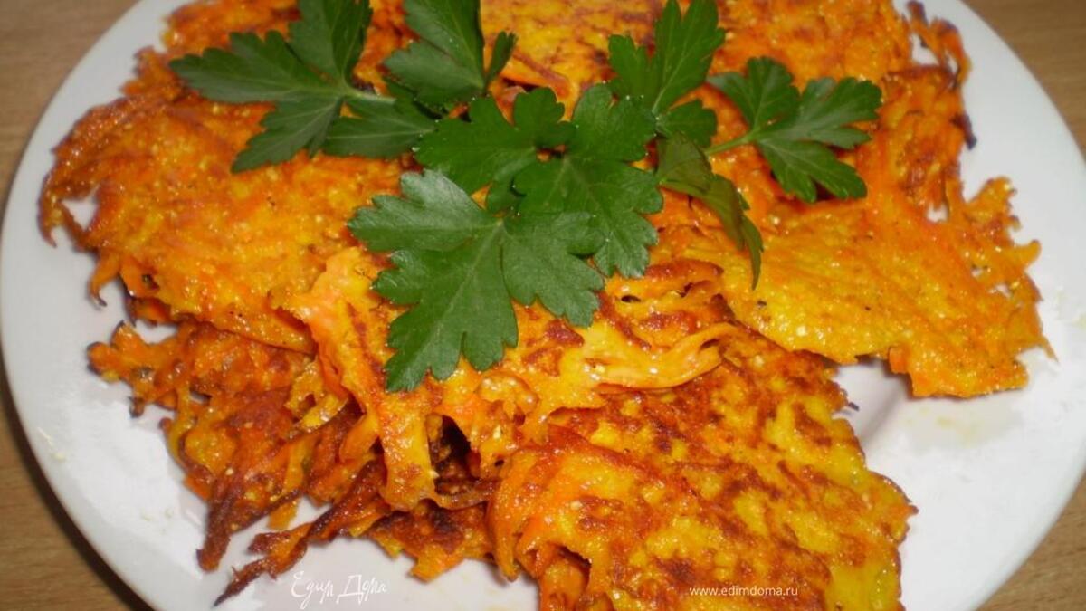 - Шаг 1Морковку натираем на терке, мне нравится на крупной. Яйцо взбиваем с мукой и солью, добавляем сыр и морковку, перемешиваем и вливаем сливки. Обжариваем небольшими порциями на ооооочень небольшом количестве масла с обеих сторон до золотистости. Все, приятного аппетита!