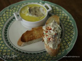 Картофель надрезать сверху, вынуть немного мякоти и начинить тунцовой заправкой.