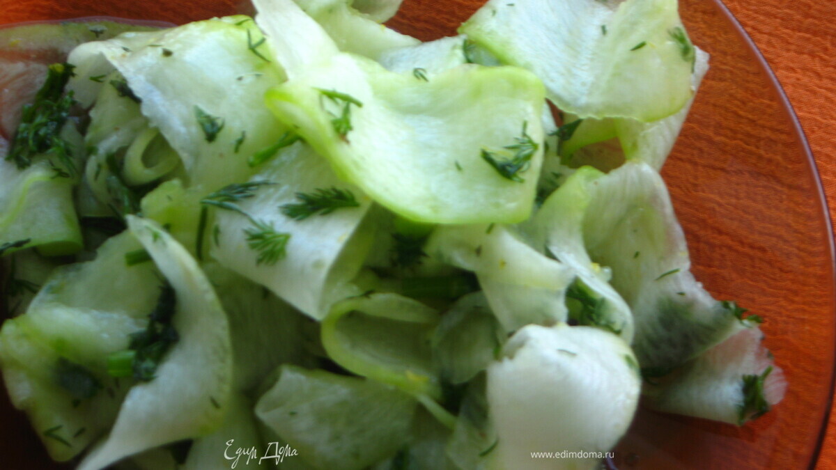 Кабачки чистим, удаляем мякоть и при помощи овощечистки строгаем тонкими полосками. - Шаг 1