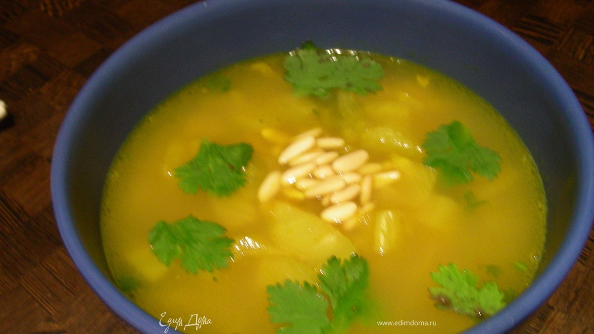 Суп из фенхеля с кедровыми орешками и анисовым алкоголем