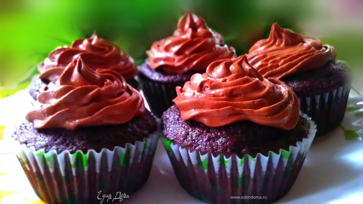 Нанести шоколадную глазурь на остывшие капкейки.