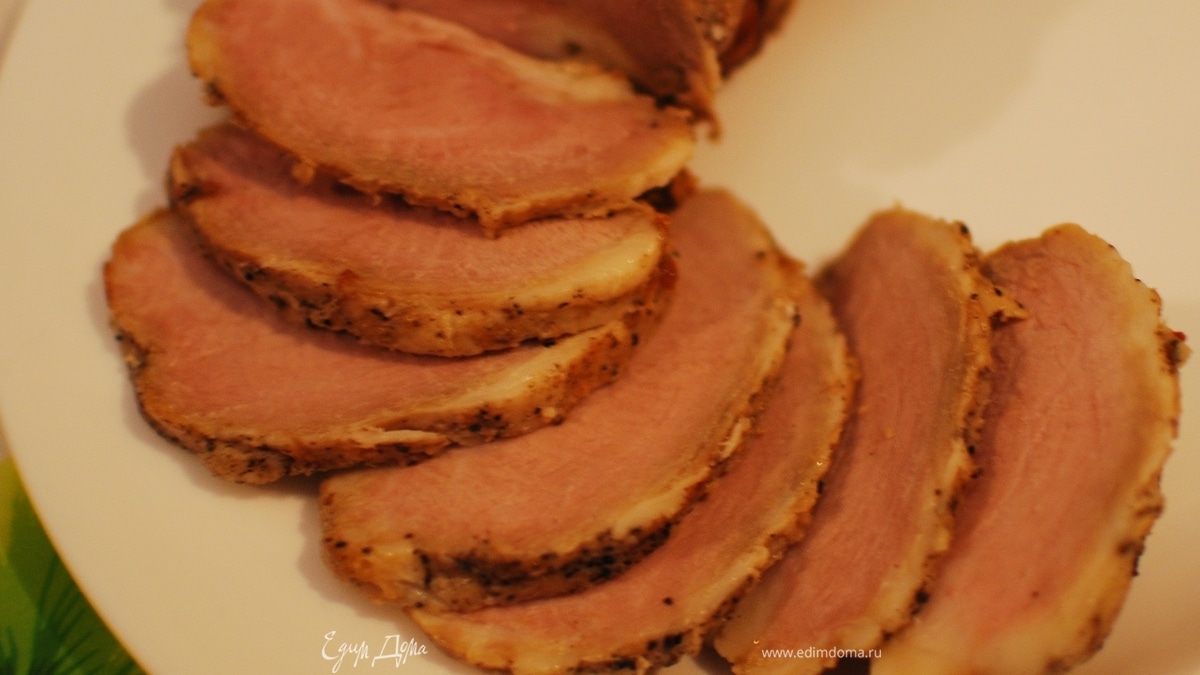 - Шаг 1Свиную мякоть (примерно 1-1.5кг) нужно выбирать так, чтоб кусок был достаточно равномерный по толщине.