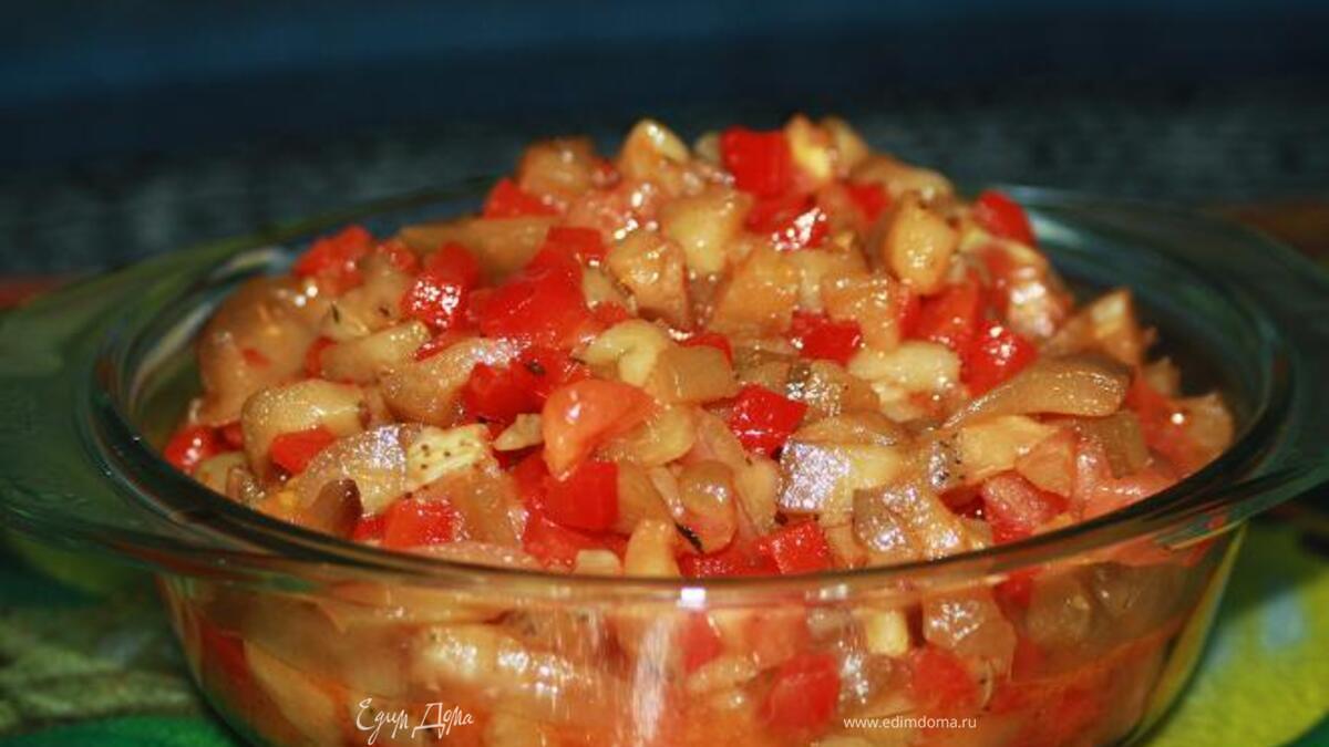 - Шаг 1Баклажаны и перцы разрезать на половинки и запечь их в духовке 25-30 минут на 220 гр. Горячими положить в пакет, пусть пропотеют, так легче снять кожицу. Помидоры окатить кипятком, снять кожицу, нарезать мелкими кубиками. Так же поступить с другими овощами. В чашке смешать оливковое масло, немного чили, бальзамический уксус, соль, немного горячей воды. Заправить этим соусом овощи и отправить в холодильник на пару часов.