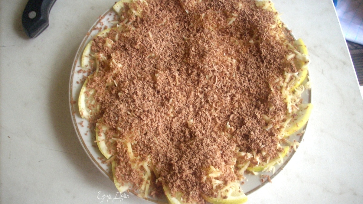- Шаг 1Натираем на мелкую терку орехи, шоколад и сыр. Лимон тонко режем. Выкладываем на тарелку слоями лимон, орехи, капаем майонез (совсем чуть-чуть), насыпаем сыр, а сверху шоколад. И поедаем)))