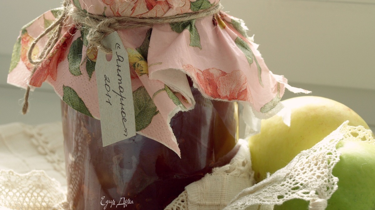 Очередная импровизация на тему варенья, получилось изумительного янтарного цвета. Думала назвать Рождественское -- тёплый корично-яблочный аромат с ноткой цитруса очень напоминает о Новом Годе ;)