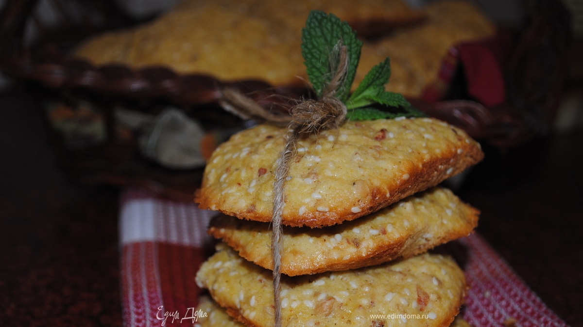 Добавить кунжут, муку, разрыхлитель, еще раз все перемешать и оставить на час. Потом тесто брать смочеными руками, формировать лепешки, и на противень