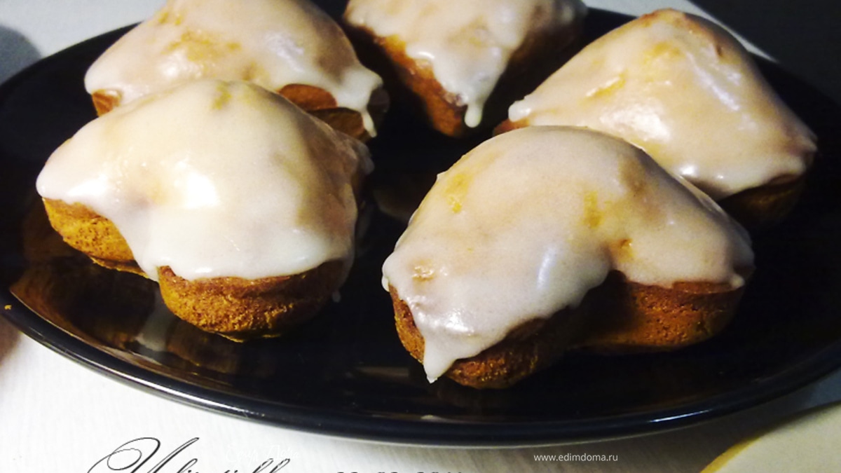 - Шаг 4Приготовить глазурь, следуя инструкции на упаковке: подогреть 1-2 ст.л. молока, всыпать содержимое пакета и перемешать до однородности. Готовые кексы полить приготовленной глазурью. Такую глазурь можно приготовить самостоятельно из сахарной пудры, крахмала и ванилина (+молоко).