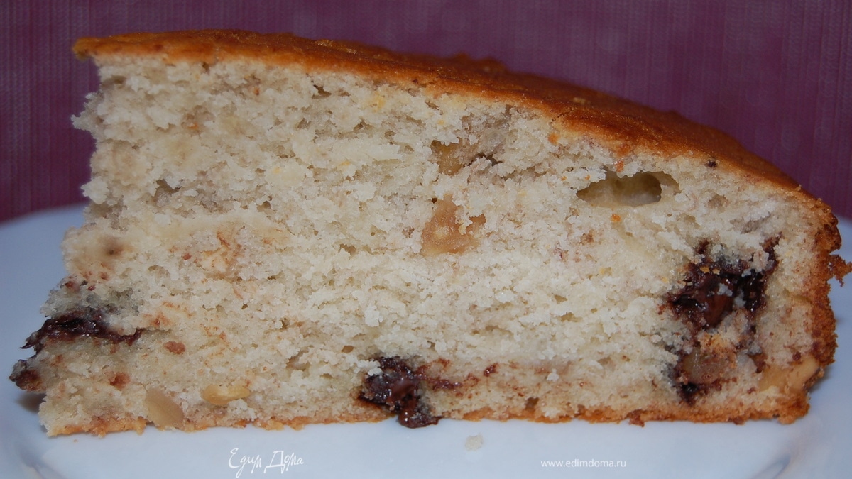 Банановый пирог с орехами и шоколадом