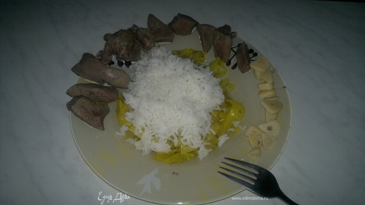 Печень индейки с капустой и ароматным рисом