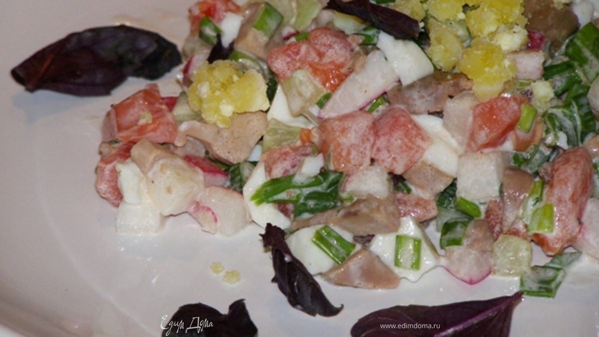 Наводила порядок в кухонных шкафчиках и наткнулась на консервы "Печень трески". Надо было что-то с ними сделать. Очень под руку мне подвернулся рецепт салата из печени трески Юрия Рожкова (шеф повара Vogue Cafe). Сделала. Мужу очень понравился. Теперь довольно часто делаю мужу на ужин - вкусно, полезно, не особо калорийно)))