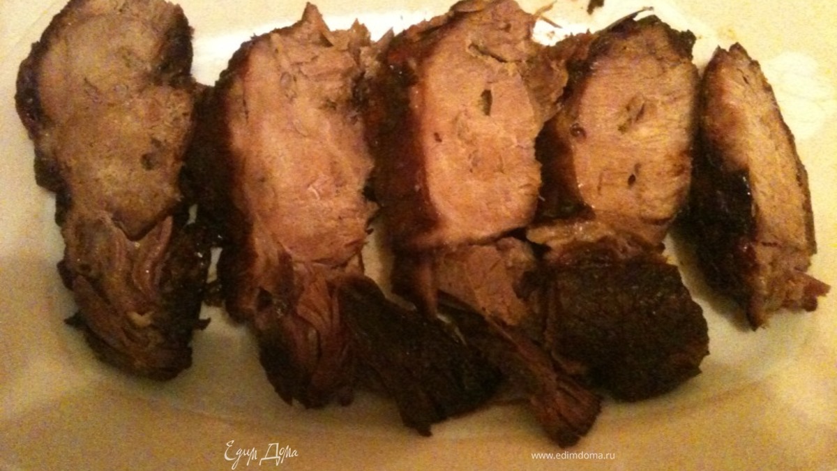 Выложить мясо в рукав для запекания и запекать в духовке при температуре 150 градусов 3 часа. Подавать можно и в горячем и в холодном виде. Приятного аппетита!
