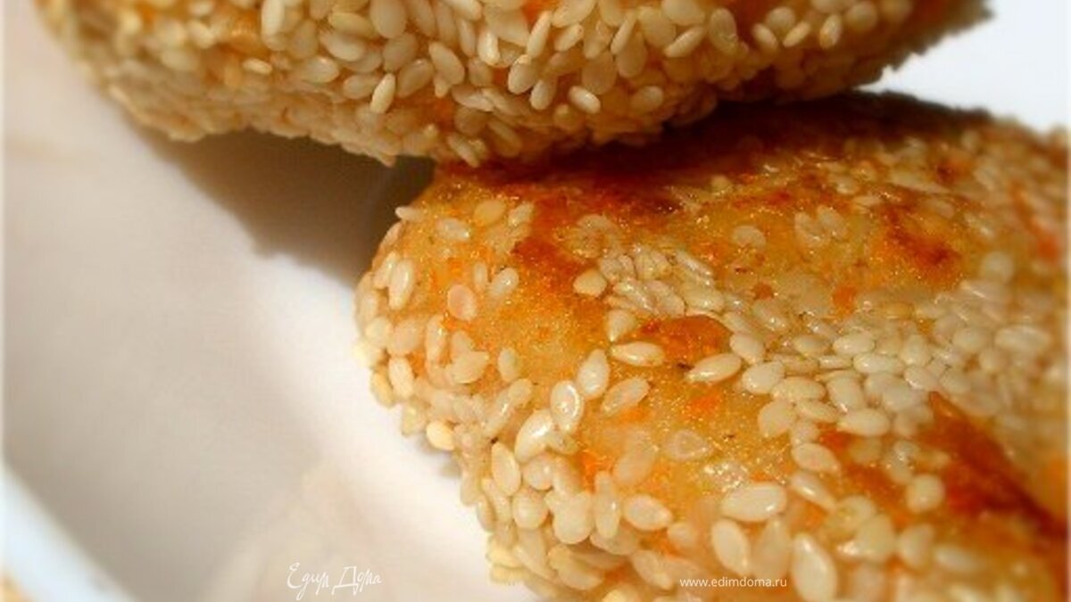 - Шаг 5Кунжут насыпьте в тарелочку, формируйте биточки и обваливайте их в кунжуте.
