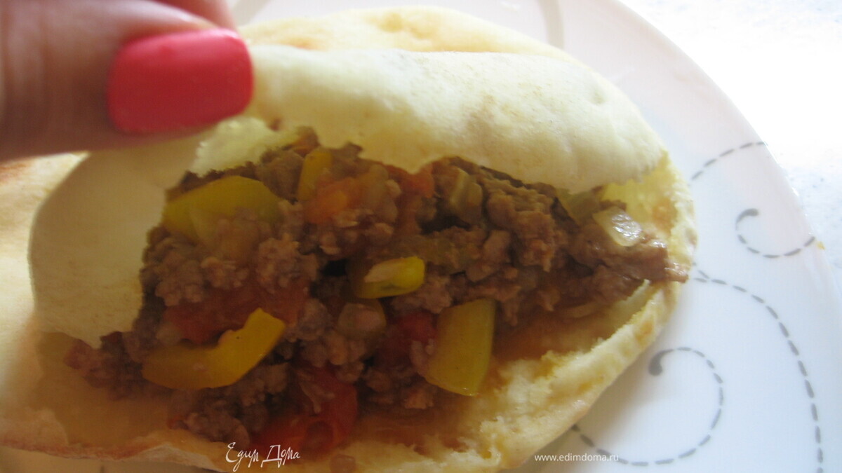 - Шаг 3Разрезаем один бок у питы и закладываем туда теплую сочную начинку! Приятного аппетита!!!