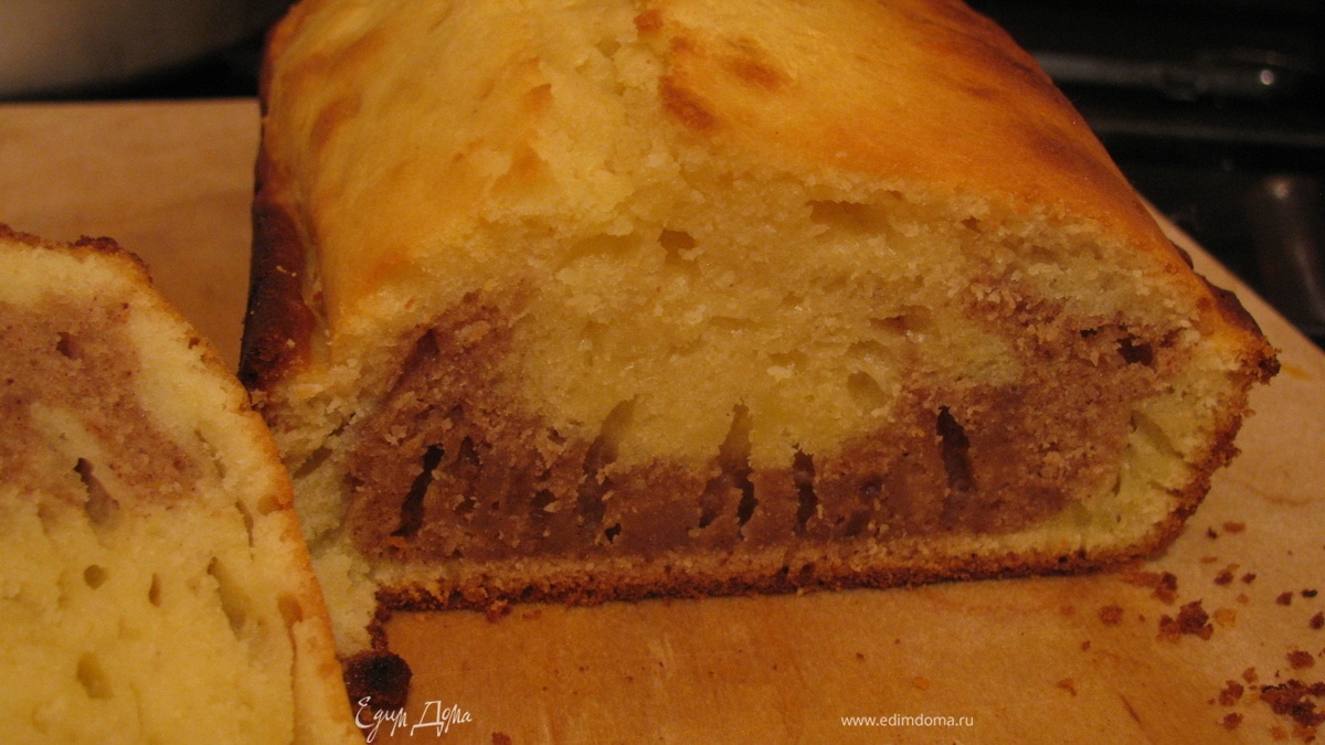 Форму смазываем маслом и выкладываем половину белого теста.Далее выливаем тесто с корицей и сверху все заливаем белым тестом.Разровнять поверхность и в духовку на 30мин.Готовность проверяем деревянной палочкой.