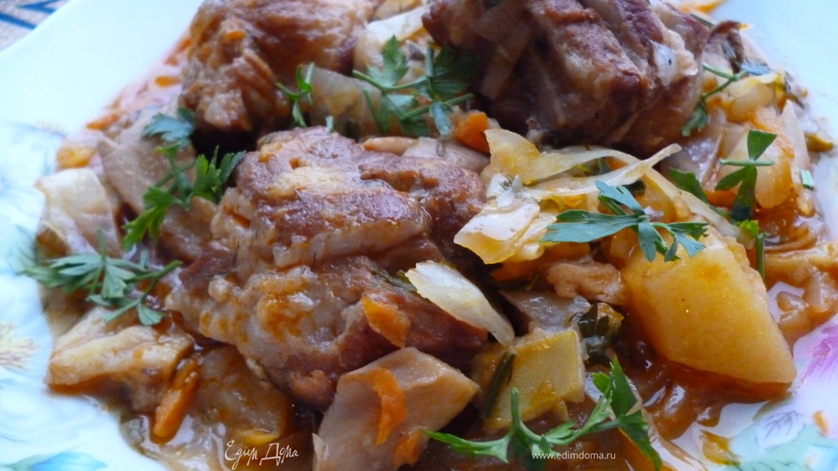 Бигус(или бигос)-это национальное блюдо поляков.Готовится он из кислой и из свежей капусты,с мясом и копченостями,с картошкой и без нее.Иногда добавляют грибы,чернослив.Бигус-это и первое и второе блюдо вместе.Очень ароматное и вкусное.Я его готовлю довольно часто.Готовлю из свежей капусты,зимой добавляю квашеные помидоры.Копчености не использую,так как некоторые члены моей семьи не любят привкус копченого мяса в этом блюде.Я использую свиные ребрышки,они в этом блюде сочетаются просто великолепно.Предлагаю и вам отведать это вкусное блюдо.