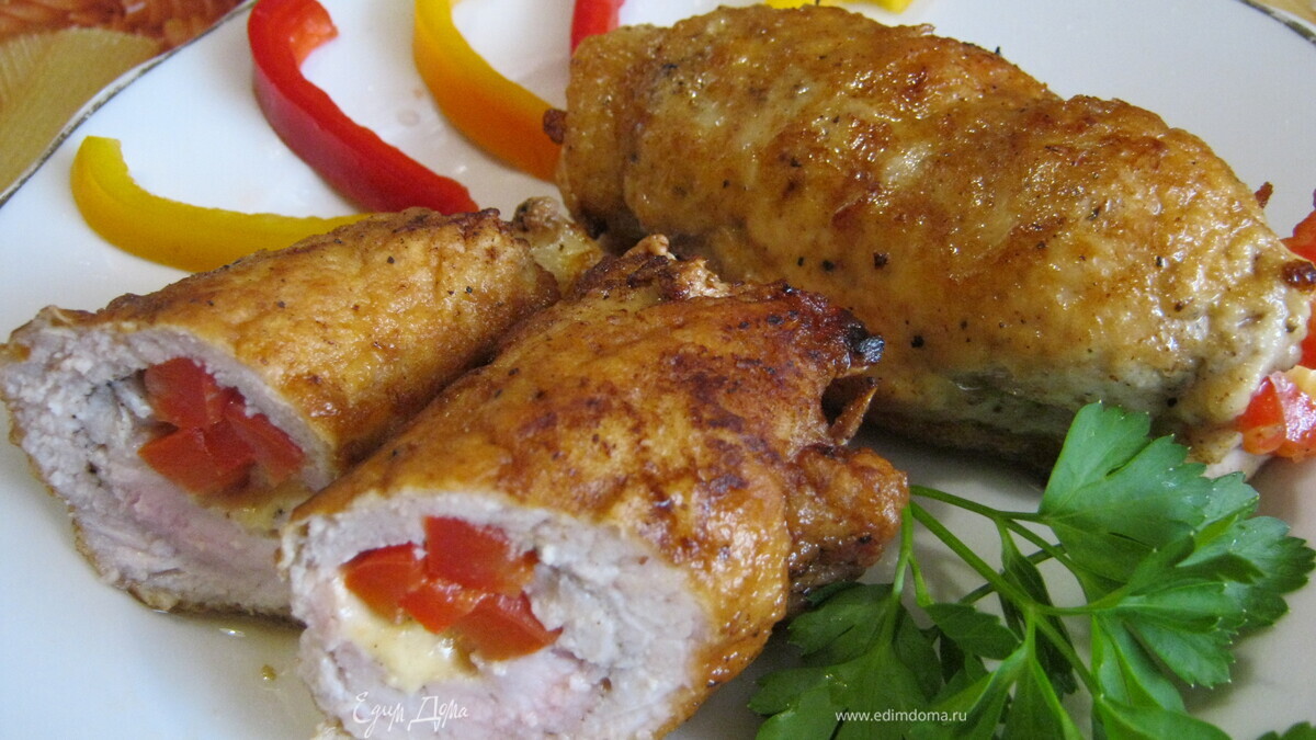 В отбивные завернуть 4полоски перца и брусок сыра. - Шаг 4