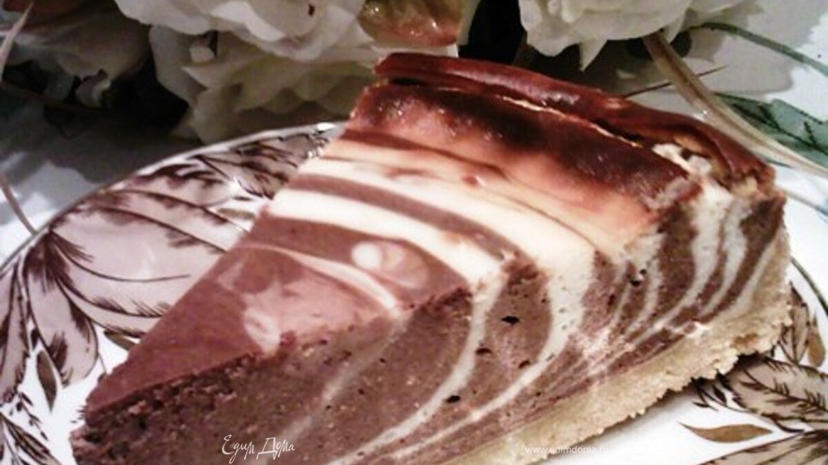 - Шаг 1Все соединить и тщательно перемешать миксером (я пробиваю блэндером). Разделить на две части, в одну добавить 25 гр. какао. Замесить тесто, завернуть в плёнку, положить в холодильник на час. Тесто раскатывать его прямо на форме, поднять бортики на 2 см. Творожную массу выкладывать в середине по две ст. л. попеременно - светлую, тёмную... Не размазывать, она сама растекается по всей форме. Выпекать при темп. 175-180С около 60 минут. После выпекания середина будет немного колыхаться, не беспокойтесь, все застынет. Резать остывшим. Форма 26 см диаметр, в высоту пирог получается около 4-5 см.