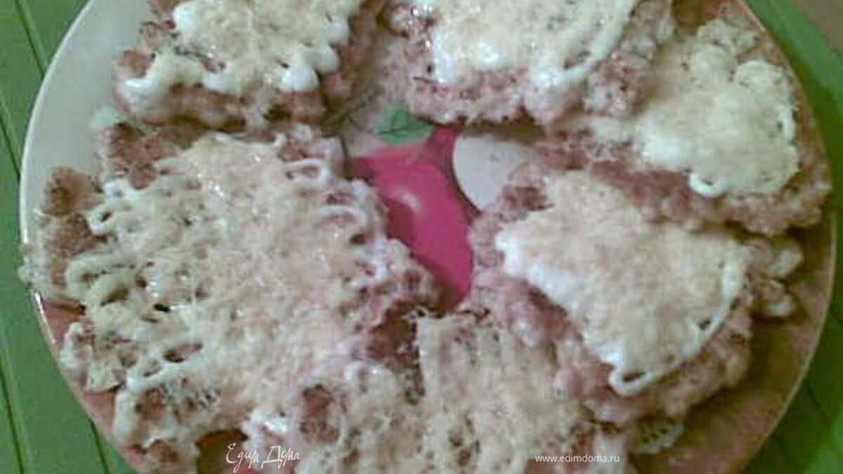 - Шаг 1Курочку нарезать мелкими кубиками, добавить в полученный фарш яйца, сухари, соль и перец. Перемешать. При помощи ложки выложить получившуюся смесь, на разогретую сковороду сформировав лепешку, обжарить с двух сторон. Тем временем, смешать майонез с выдавленным чесноком и отправить в кондитерский мешок (у меня был обычный целлофановый с проделанным отверстием). Сыр натереть на мелкой терке. Далее на готовые котлетки намазать майонезно-чесночный соус и сверху посыпать натертым сырком. Приятного аппетита.