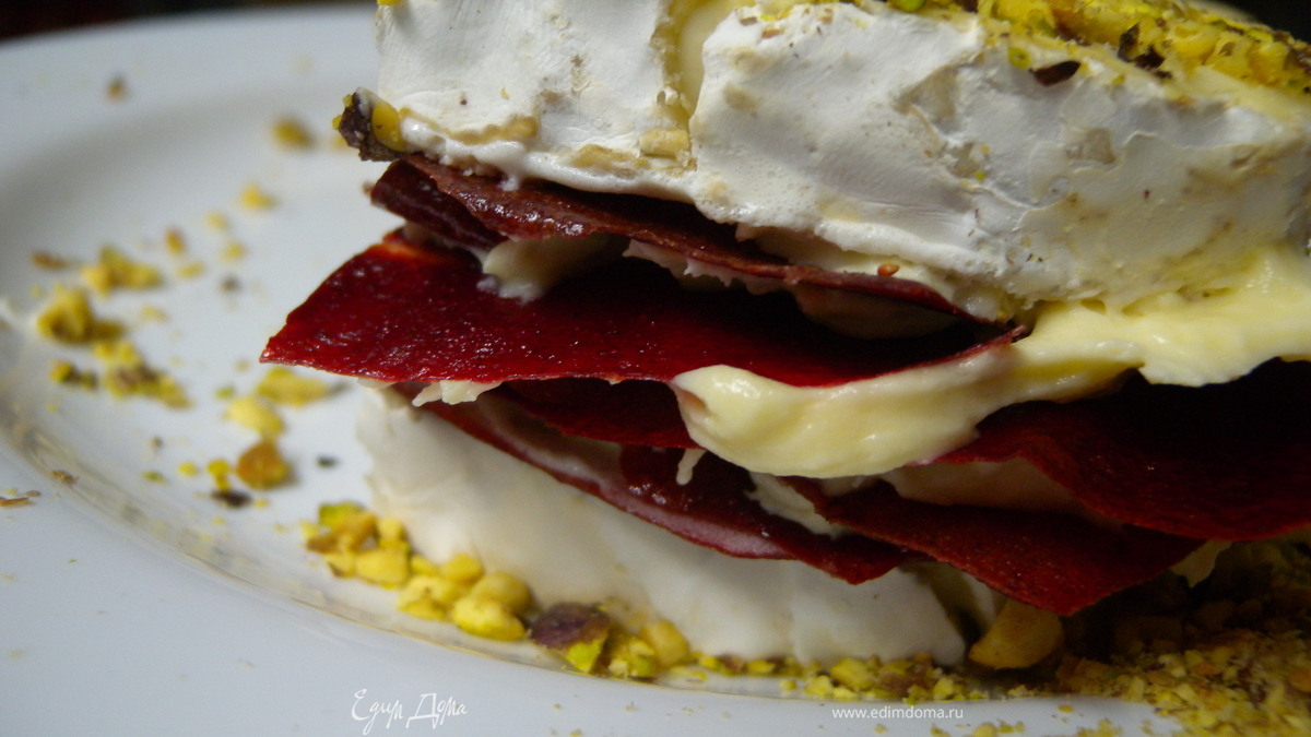 Посыпать на сливки немного перца (белый). Вообще было бы супер с пудрой чили. (потом опять пастила... крем...)