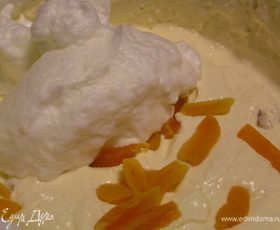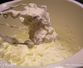 Миксером взбить жирные сливки и туда же их, к творогу.