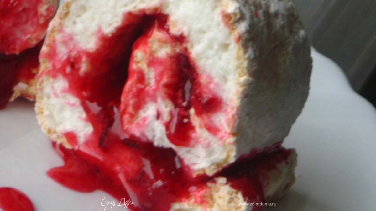 Меренговый рулет с клюквенным соусом-начинкой