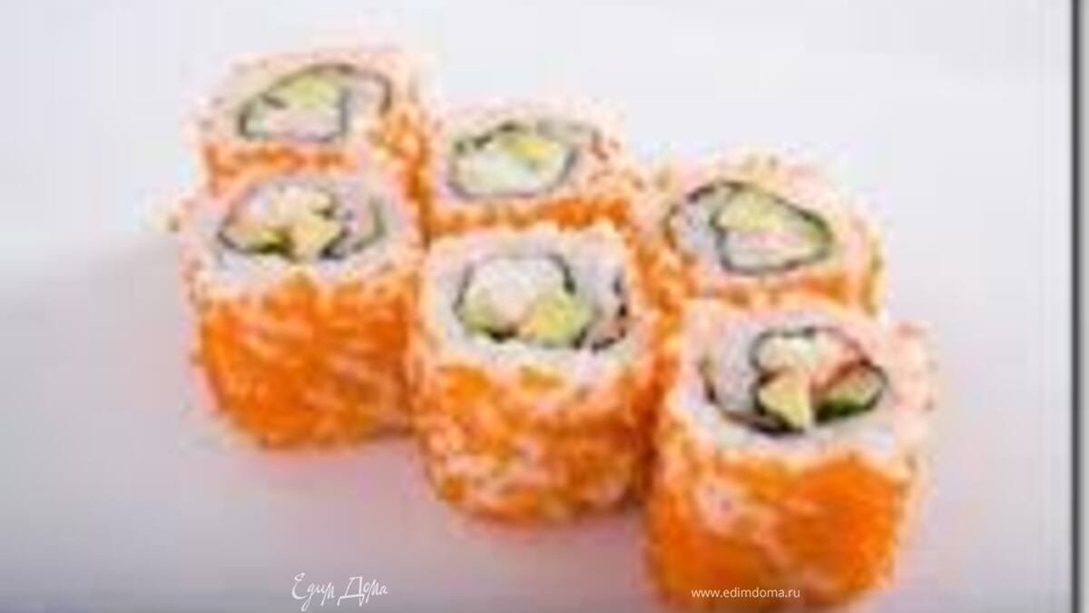 - Шаг 2Далее на коврик, полностью покрытый пишевой пленкой, выкладывается рис так, чтобы он покрывал собой 2/3 коврика и приэтом был довольно плотно уложен (размазан). Накрываем рис половинкой листа нори, сверху выкладываем начинку. Заворачиваем ролл, аккуратно убирая пленку по мере ее освобождения. Обрезаем края, обваливаем в икре и нарезаем на части. Подаем к столу с хреном васаби, соевым соусом и имбирем.