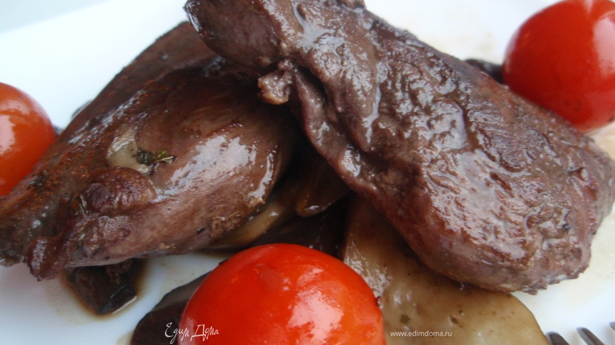 На тарелку выложить немного грибов, сверху утиное филе и полить соусом образовавшимся при тушении. По краям положить томленные в соусе помиродки черри. Очень ароматно, красиво и вкусно. Приятного аппетита!