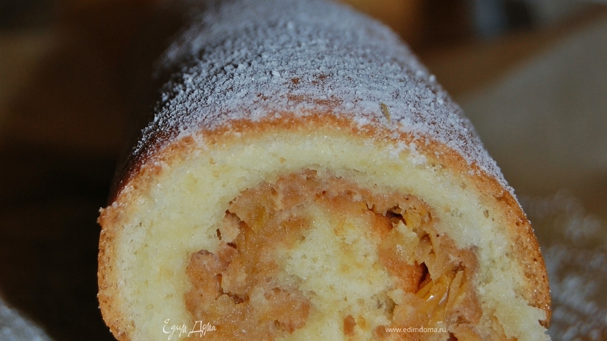 Бисквитный рулет с яблочной начинкой