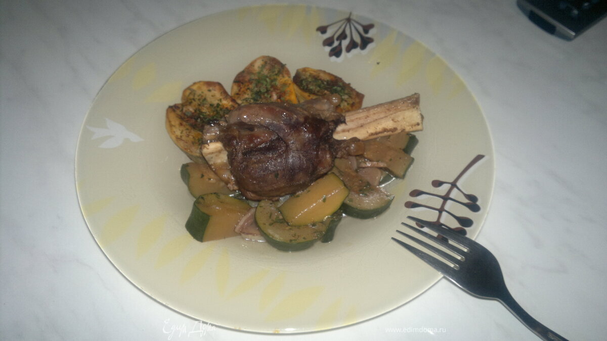 Ножки барана + печеный острый картофель и тушеный цукини