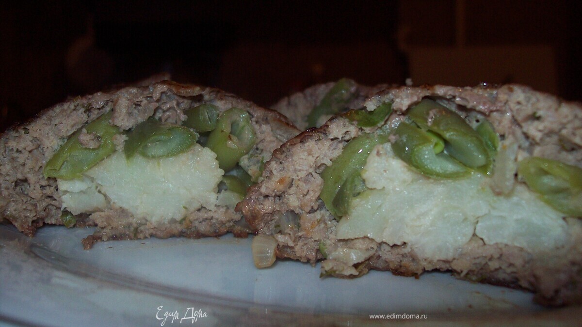 фарш разминаем в лепешечки на середины выкладываем фасоль и цветную капусту, соединяем края фарша и формируем котлеты - Шаг 5