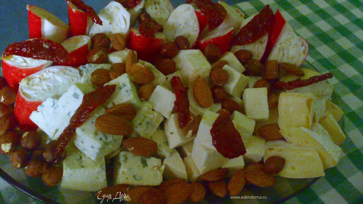 Блюдом это конечно трудно назвать, но все же здесть частично присутствует и приготовленная своими руками закуска в виде фаршированных крабовых палочек.А завал потому что не нашлось большого блюда под рукой, что бы красиво оформить "сырную тарелку".